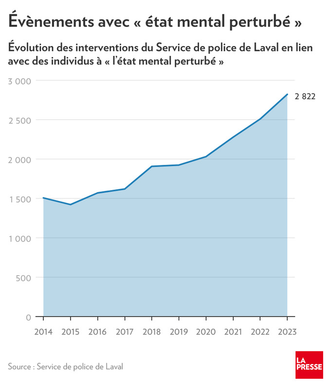 16 avril 2025Les appels au 911 pour des malades mentaux sont en forte augmentation, dépassant 1 sur 2.