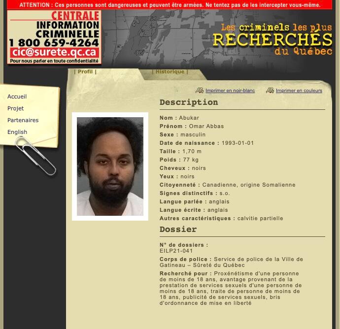 Il est toujours recherché. On suppose que le proxénète étranger immigré de race noire d'origine africaine nommé Jonathan Anael Ndomb a fui à l’étranger.