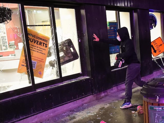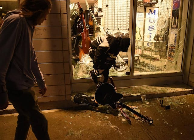 Plus tard, le magasin Steve’s qui vend des instruments de musique sur la rue Sainte-Catherine a été pillé. La vitrine a été fracassée, des étagères renversées et des guitares ont été volées par des vandales.